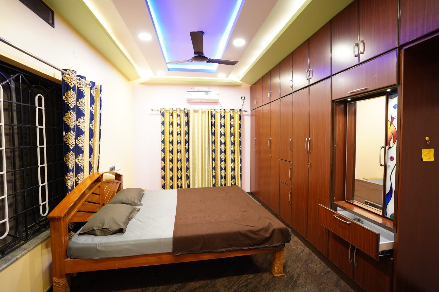Our Luxurious bungalow features three air-conditioned bedrooms, a spacious living and dining area, a fully equipped kitchen, and a small function hall on the first floor—making it perfect for intimate gatherings and celebrations. Guests can enjoy the infinity pool, beautifully landscaped green lawn, and a range of modern amenities like free WiFi, ample car parking, and delicious food & beverages.